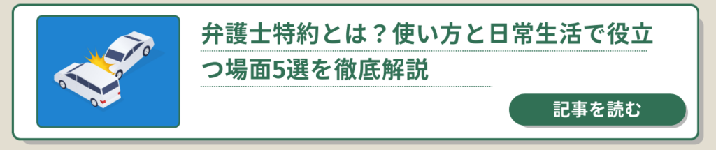 弁護士特約を使えば、「費用が高そうだから…」といった不安なく、弁護士に相談・依頼することができます。特約が使えるかどうか、ぜひ気軽に問い合わせしてみましょう。